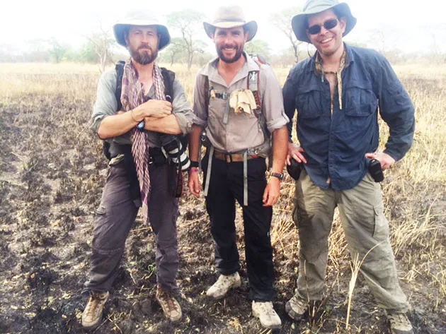 左起:Florio、Wood和Power在2014年3月10日上午在乌干达,马特倒下前不久感谢《走过尼罗河》