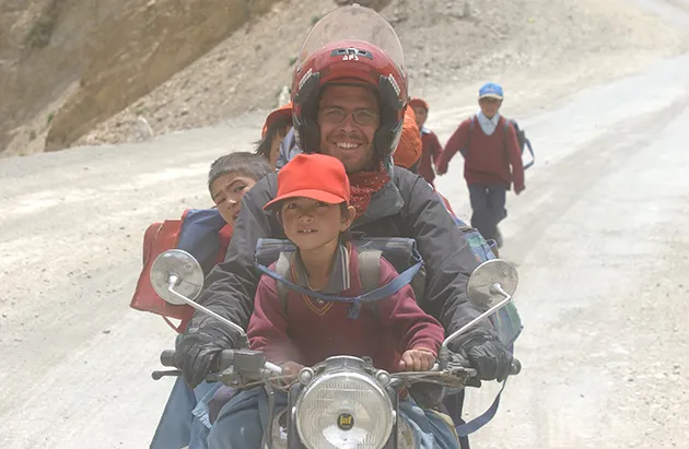 2004年在喜马拉雅山的摩托车旅行中的鲍尔摄影:阿米·维塔尔