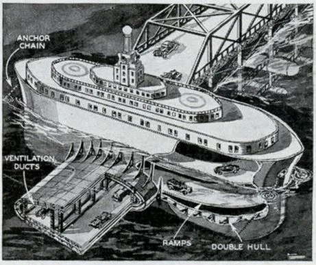 这个“船隧道”的想法直接穿过世界上现在最具标志性的桥梁之一,来自当地发明家克里夫·F·谢弗,他的 讣告声称 他还“预见了坦克、火箭筒和移动人行道,尽管他未能从其中任何一个中获得名声。”谢弗计划的主要吸引力在于经济:人们认为这个奇特的结构只需桥梁3500万美元价格的三分之一。有关当局对此优惠非常感兴趣,以至于他们被引导“认真考虑建造船隧道桥”,该杂志 现代机械 报道称,“这将是世界上唯一的一座。”