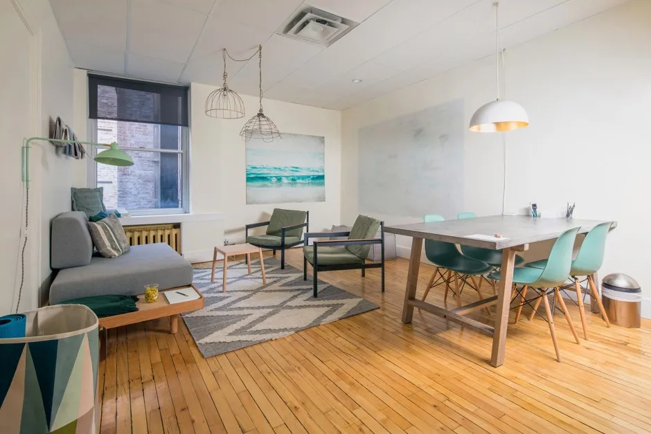 截至三月底,蒙特利尔有五个Breather地点,纽约有五个,旧金山计划在五月推出,波士顿将在今年晚些时候跟进。自然,我想试用几个空间,于是我下载了免费的应用程序——图标是一个简单的白色圆圈,里面有一棵友好的小绿树,恰到好处地令人放松——并迅速在曼哈顿中城的宾州车站附近预订了一个Breather。在应用程序中,你可以在地图上找到Breather地点,浏览照片和房间详情,并预订一个空间,时间从30分钟到整个工作日不等。价格也很实惠:纽约每小时25美元,蒙特利尔15加元。
