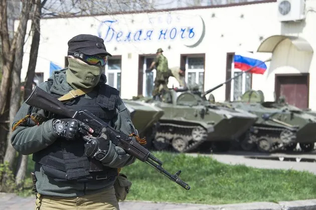 乌克兰克拉马托尔斯克镇的亲俄武装分子,拍摄于4月16日摄影:Ilya Pitalev/Kommersant Photo via Getty Images乌克兰的情况正在恶化。政府的反击行动针对亲俄武装分子遇到了障碍——字面意义上。乌克兰军队正在叛逃。悬挂俄罗斯国旗的军事车队仍然在驶入市中心,并在乌克兰军用直升机的盘旋下进行胜利游行。与此同时,北约正在增加其存在,卫星照片显示俄罗斯军队在边境附近集结。