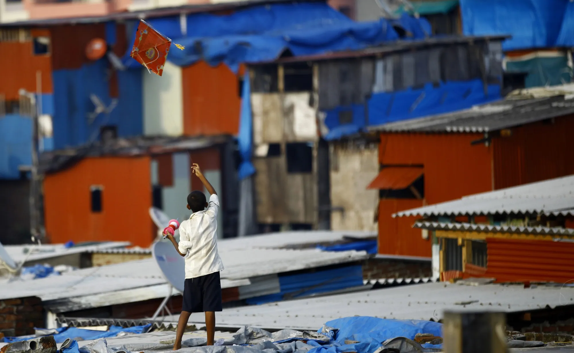 一个印度男孩试图在印度孟买的贫民区屋顶上放风筝美联社/拉菲克·马库布尔**6) 因为贫民窟居民准备自助。**并非所有贫民窟都是相同的;有些是贫困陷阱;有些则不是。我们需要更好地理解后者的具体不同之处,并努力利用它们的积极特征。贫民窟也由不同类型的社区组成,它们的多样性可以推动未来的发展。圣菲研究所的路易斯·贝滕库特和何塞·洛博的研究发现贫民窟居民可以成为自己最有力的倡导者和变革者:研究表明,贫民窟是并且可以被转变,如果我们为他们的居民和社区提供正确的工具,倾听他们的见解,并从他们身上建立和支持。但这不能通过临时措施实现;新的联合国城市目标可以帮助识别和建立基于贫民窟实际发生过程的最佳实践,以指导减贫和经济发展。