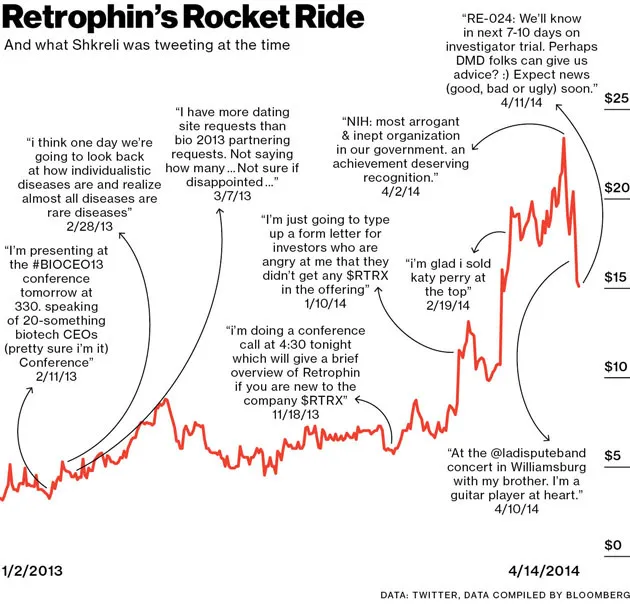在他二十多岁的时候,在建立自己的对冲基金后,什克雷利因利用一个股票八卦网站来抨击他做空的生物技术公司而声名鹊起。这并不是在生物技术领域获得人气的途径。2012年,非营利组织华盛顿责任与伦理公民(CREW)公开指控他试图操纵美国食品和药物管理局以获取经济利益。再次,什克雷利没有面临政府指控。“我像龙卷风一样进入这个领域,”他自夸道。