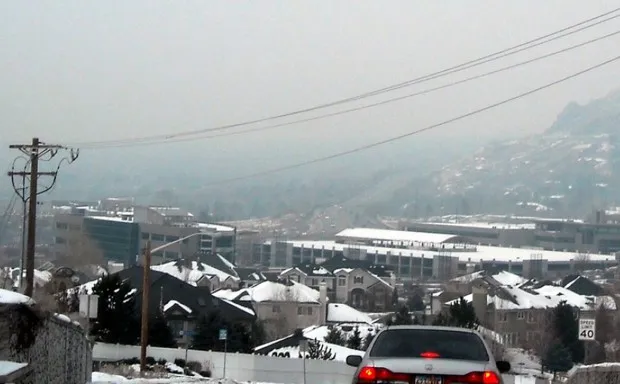 顶部图片:2010年透过雾霾俯瞰盐湖城的景象。(Flickr)