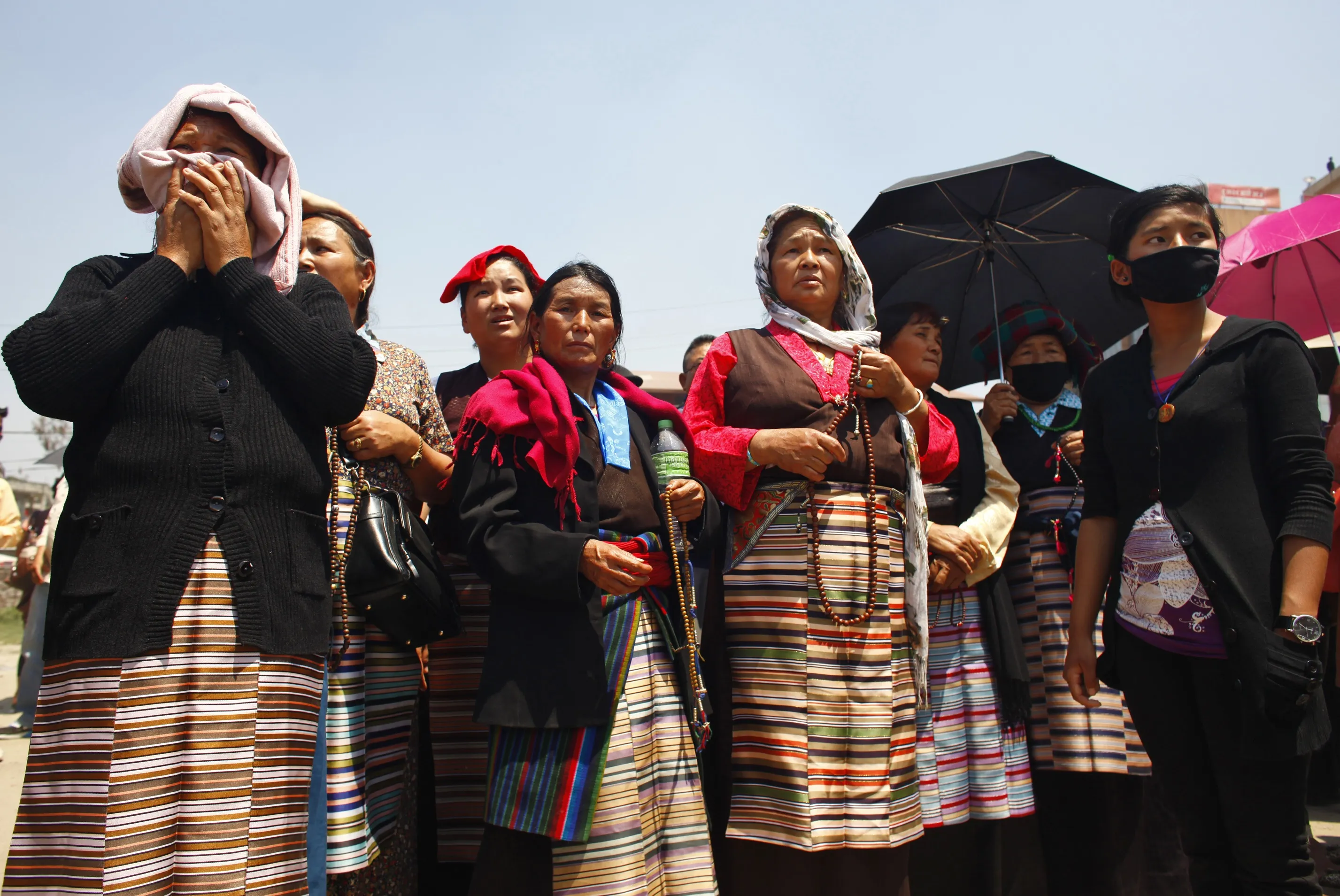 在加德满都,因珠穆朗玛峰雪崩而遇难的登山者的亲属在葬礼仪式上哭泣。尼兰詹·施雷斯塔/美联社