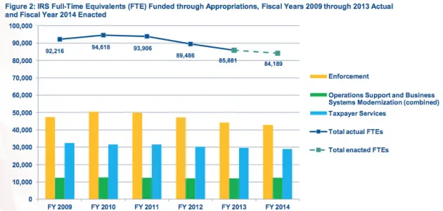 自2009年以来,国税局裁减了8,000个职位,主要来自其执法人员。