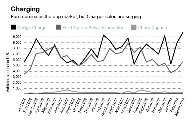 而道奇可能不需要费太大力气来说服许多警察。其即将停产的Charger车型的销量去年激增了19%,而福特的Taurus仅增长了8%,Caprice则增长了4%。
