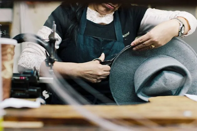 在纽约的Satya Twena工作室制造设施中修剪帽子的面料摄影:Atisha Paulson/Bloomberg关于服装制造商回到美国的讨论很多。