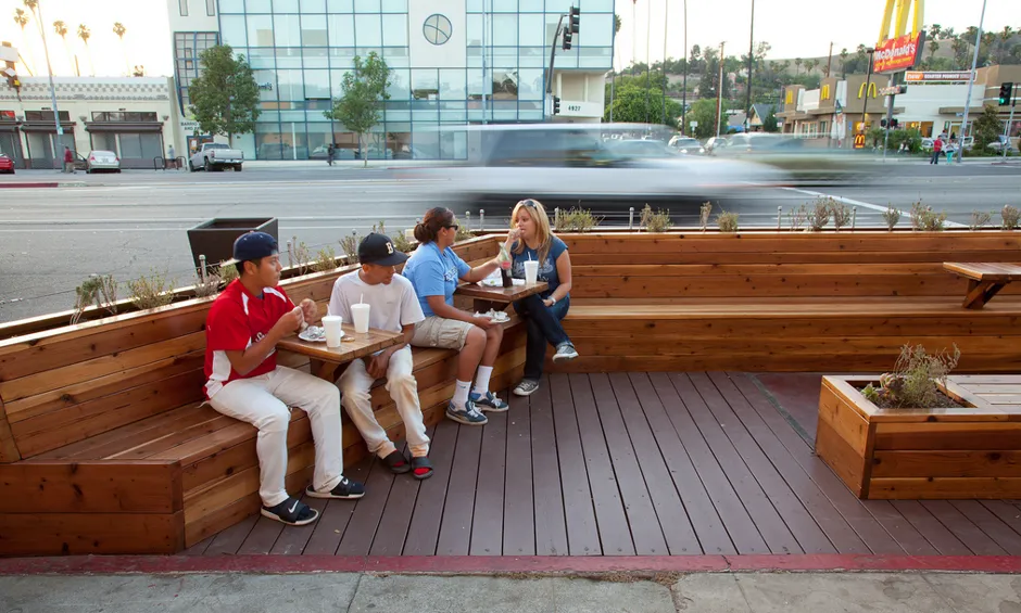 LADOT/吉姆·西蒙斯在洛杉矶,只有16%的城市面积用于公园土地,使其在公共土地信托的公园评分中排名第34位,50个城市中排名第34。因此,今年早些时候,城市交通部门启动了一项计划,以解决两个常见投诉:洛杉矶公共绿地的匮乏和发放实验新形式公共空间使用许可证的缓慢速度。该倡议被称为“人民街”,旨在加快社区团体将街道转变为公共空间的申请,为期一年,并提供预先批准的设计选项。