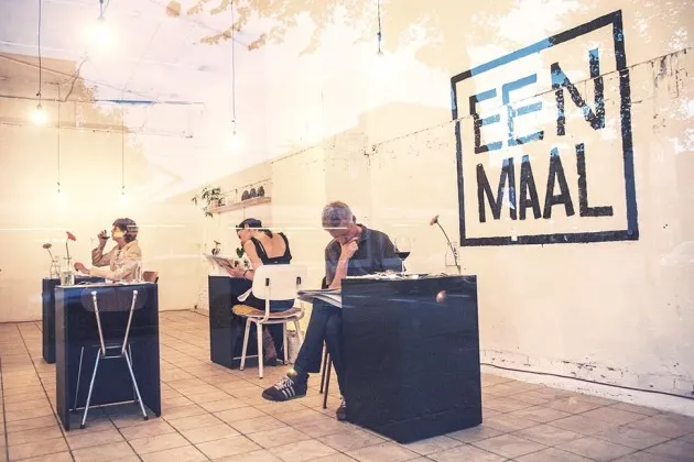 Eenmaal摄影:Joep Niesink 通过彭博社1984年电影 孤独的家伙 的一个场景完美地戏剧化了我们许多人对独自用餐的恐惧。主角由史蒂夫·马丁饰演,他走进一家高档餐厅,要求一个人的桌子——“我一个人,”他告诉餐厅经理——当房间的喧嚣戛然而止时,戏剧性的聚光灯跟随这个可怜的家伙走到他的座位上。阿姆斯特丹一家新的快闪餐厅,自称是世界上第一个为独自用餐者而设的餐厅,旨在消除独自用餐的社会污名。事实上,这里没有双人桌。