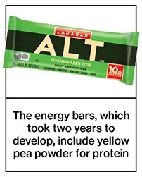 在通用磨坊,ALT的销售自去年五月推出以来,已经超过了目标,ALT有六种口味,包括柠檬磅蛋糕。今年一月,该公司的Cascadian Farm品牌推出了自己的豌豆蛋白棒。基于豆类的谷物可能是下一个,尽管通用磨坊不会透露具体的产品计划。