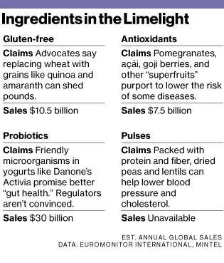 及早识别食品趋势可以带来巨大的财务回报。许多含有高抗氧化成分的产品,如石榴和巴西莓的销售增长速度是整体食品行业的三倍。根据研究机构Euromonitor International的数据显示,含有被宣传为有助于消化的微生物的益生菌酸奶,已成为全球每年300亿美元的超市类别,并将在2018年前增长50%,达到450亿美元。而根据你相信的研究者,无麸质产品现在每年的销售额在5亿美元到105亿美元之间。“大部分增长通常在早期阶段就能获得,”Mintel的分析师Chris Brockman说。“当大公司通常开始参与时,趋势已经在减弱,回报也较少。”