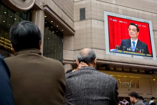 屏幕显示中国总理李克强在2014年全国人民代表大会开幕式上的讲话摄影:布伦特·刘因/彭博社中国国务院在总理李克强的主持下,宣布计划在今年推出重大刺激项目,此前在昨天的执行会议上做出了决定。此项公告是在经济出现新迹象疲软的情况下发布的;同一天,汇丰银行的一个指标发布显示制造业持续收缩。