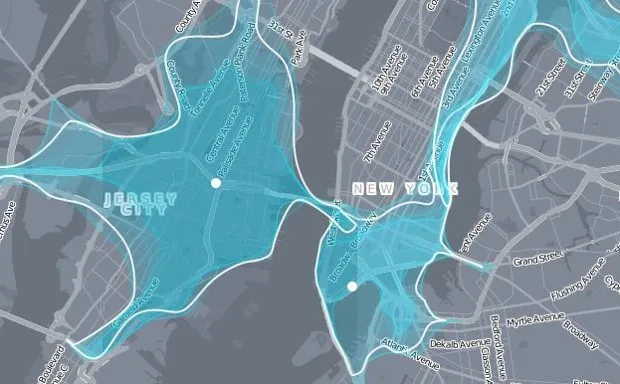 这个距离在下午4点像水母一样缩小。你仍然可以进入曼哈顿,但只是勉强,而公园坡和红钩是禁区: