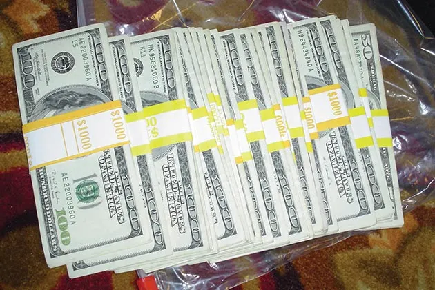 从乔治·P·赫拉诺夫斯基的保险箱中查获的现金堆积总额为158,000美元,他被判处14年监禁,并与他的商业伙伴埃里克·门登一起被命令支付3280万美元的赔偿,并没收进一步的4350万美元。这再次与联邦银行的欺诈有关。