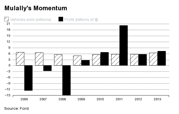 将企业机器调校得如此精细的功劳归功于穆拉利。福特在他接手的那一年亏损了126亿美元,且其六个不同的品牌中,底特律有很多机会可以利用。