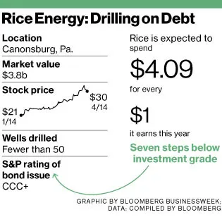 赖斯在宾夕法尼亚州格林县的运营。感谢赖斯能源赖斯能源是一家信用评级较低的天然气生产商,在四月份通过债券销售筹集了9亿美元,比最初寻求的多出1.5亿美元。尽管位于宾夕法尼亚州卡农斯堡的公司连续三年亏损,钻探的井数不到50口(大多数以超级英雄和怪兽卡车命名),并表示2014年将花费每赚取1美元(在利息、税收、折旧和摊销之前)4.09美元,但投资者仍然抢购这些债券。