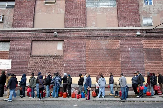人们在2012年11月3日排队在纽约皇后区的牙买加社区加油,正值超级风暴桑迪之后照片由Craig Ruttle/AP Photo提供在 桑迪飓风之后,最大的一个问题不仅是纽约,还有整个东北地区,就是完全 缺乏汽油。该地区是美国最大的炼油中心之一。但随着桑迪的逼近,它们都不得不关闭并准备迎接冲击。在风暴过后,整个地区停电,大多数炼油厂仍然处于黑暗中。