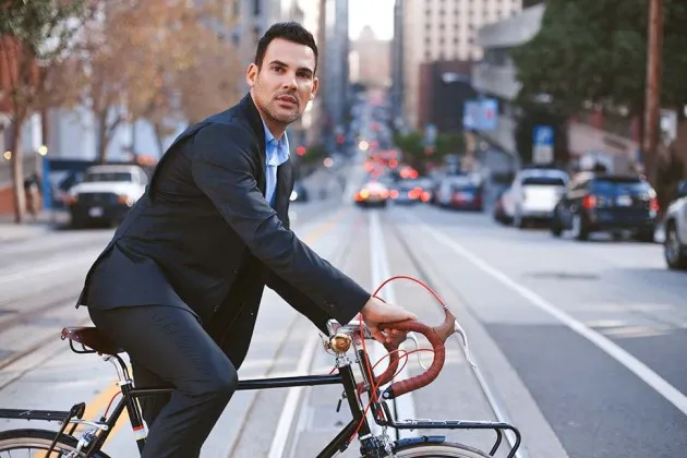 帕克·杜索通勤西装摄影:斯科特·哈梅尔在美国大多数城市骑自行车上班面临着一长串障碍,尤其是在波特兰以外,缺乏专用自行车道和因基础设施缺失而导致的受伤风险是最大的障碍。还有与时尚相关的风险。骑行时穿着舒适的衣物——比如说氨纶短裤——在办公室并不合适。