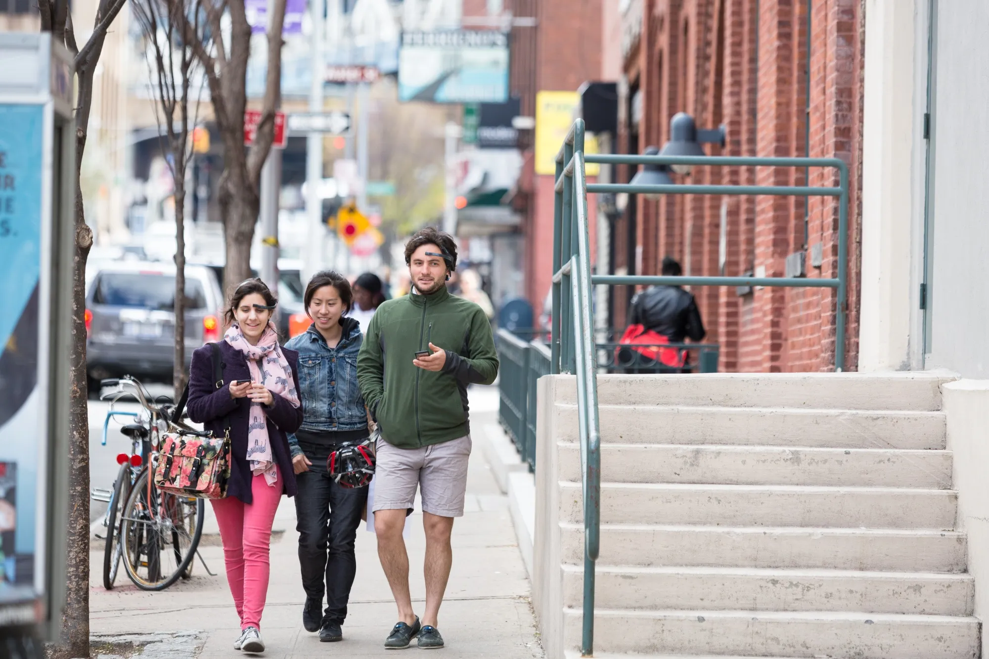 研究人员选择了达姆博的一个几街区的区域,因为这个社区包含了几种不同类型的城市环境,形成了一种微观世界。这里有大型、嘈杂的基础设施,比如曼哈顿桥;有狭窄的鹅卵石街道,街道两旁是精品店和画廊;还有一个公共海滨公园;以及更安静的住宅和办公楼。并不是我们所有人都走遍了考虑中的每个部分。不同的小组选择了不同的路线,所有人都在向导的帮助下保持方向,防止绊倒,并解决任何硬件或软件问题。