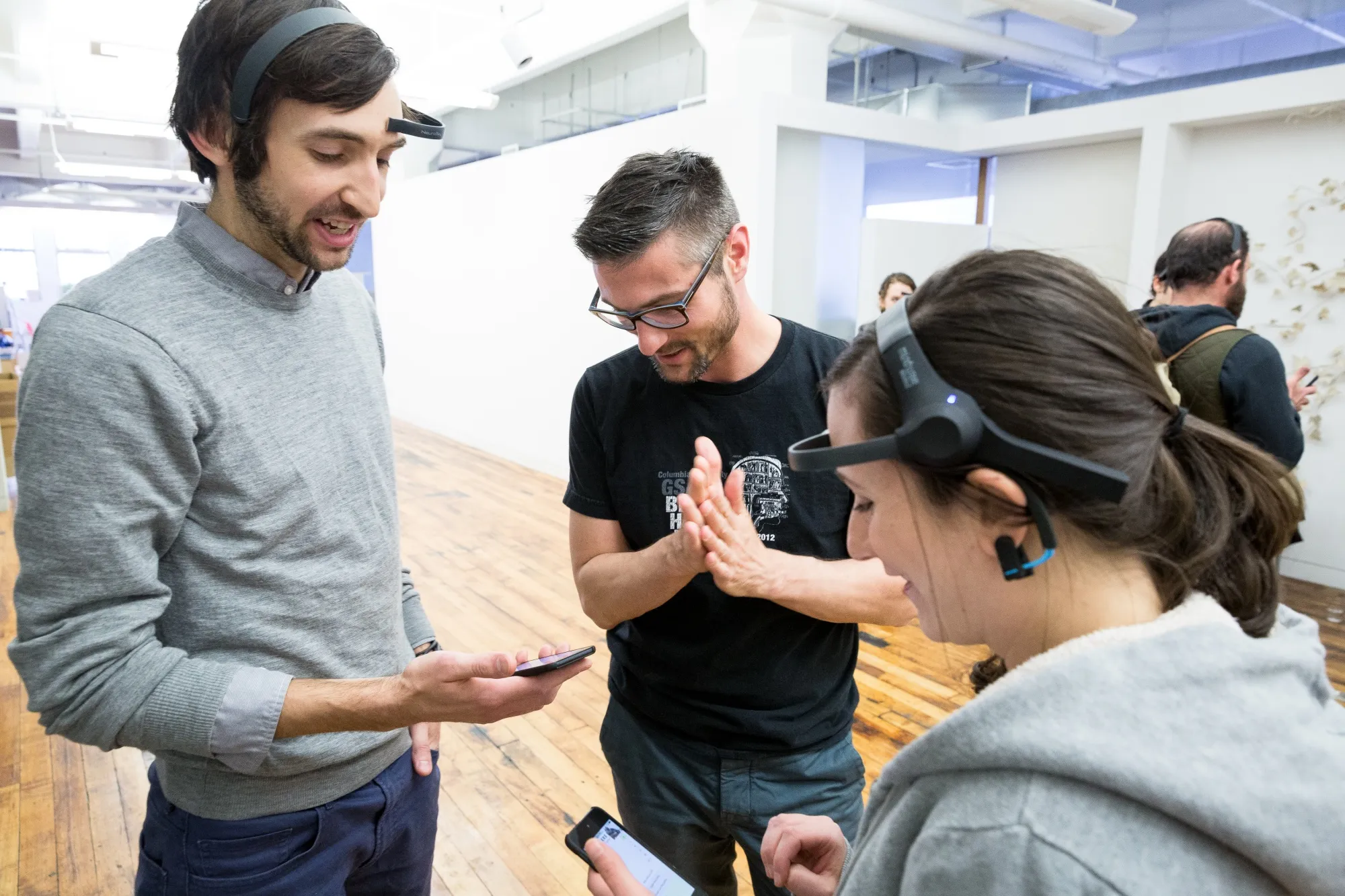 “我们都在追赶。这可能甚至不是一个需要追赶的东西。”脑成像实验的主要负责人之一是马克·柯林斯,他是哥伦比亚大学的建筑师、程序员和教授。Cloud Lab。柯林斯和他的同事们一直在玩弄快速发展的、越来越移动的技术,这些技术使我们能够监测我们的脑电波,希望利用这些数据更好地理解人类如何与他们的城市和建筑环境互动。最近,他们一直在使用我们在Dumbo佩戴的相对便宜的技术,即来自NeuroSky公司的EEG生物传感器。