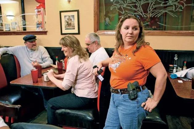 自2012年康涅狄格州纽镇桑迪·胡克小学发生26名学生和教师被枪击事件以来,18个州通过了允许在更多地方携带枪支的法律,包括学校、餐馆、教堂和公共建筑。希基等支持者认为,暴力的最佳解药是让更多公民携带武器。然而,只有四个州——犹他州、爱达荷州、密西西比州和德克萨斯州——将这一逻辑扩展到他们的立法机构。