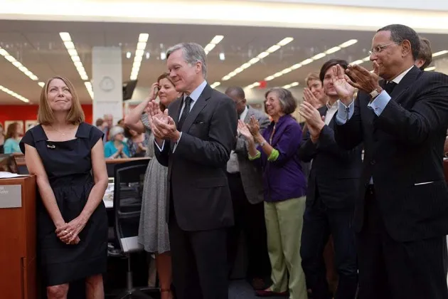 周三下午,消息在一次匆忙召开的会议上向时报的员工宣布。人们感到“震惊”,根据 时报对这一事件的报道。迪恩·巴凯,之前是时报的执行编辑,将接替阿布拉姆森。时报出版商阿瑟·O·苏尔茨伯格 Jr. 表示这一变动是由于“新闻编辑室管理问题”所致。时报的文章接着提到,阿布拉姆森被认为是“善变和粗暴的”,并且她与巴凯先生及其他人有过“冲突”。她显然还试图聘请一位新的共同执行编辑——来自卫报的贾宁·吉布森——这引发了冲突。