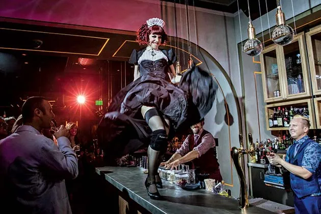 这家位于新的SLS拉斯维加斯酒店和赌场的夜总会,将是最新一批全力以赴的场所。根据Nightclub & Bar杂志,罪恶之城是美国10家最高收入酒吧中的7家所在地,已成为200亿美元行业中所有创新事物的实验室。在拉斯维加斯,狂欢者们不再满足于慢慢喝酒,观看穿着鸵鸟羽毛头饰的舞者踢腿。“他们不想看表演,”SBE娱乐公司的首席执行官萨姆·纳扎里安说,该公司拥有SLS。“他们想参与其中。”