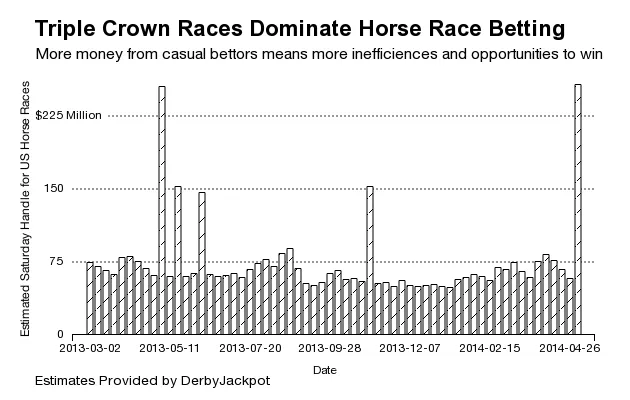 额外的现金注入大部分来自于那些没有选择马赛技能的人。这意味着会有很多不理性的投注,创造出“正期望值”投注的机会——这意味着平均而言,你的投注应该能盈利。由于有这么多醉酒的业余爱好者在投注,你有不错的机会获得利润。