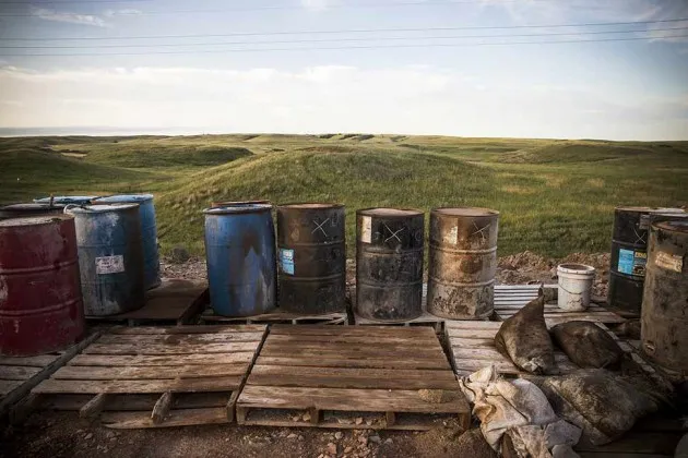 桶和托盘位于北达科他州沃特福德市附近的巴肯页岩层上的一座石油钻井平台上,拍摄于2013年7月23日摄影:安德鲁·伯顿/盖蒂图片社北达科他州的石油是否过于易爆以至于无法通过火车运输?考虑到几乎所有每天在美国运输的100万桶石油都来自北达科他州的巴肯页岩地区,这是一个重要的问题,也是联邦政府、铁路公司和石油公司争论的焦点。