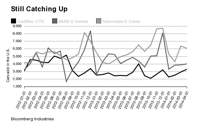 凯迪拉克在销量上仍然落后于竞争对手。在今年的前四个月,梅赛德斯在美国销售的E级轿车几乎是CTS的两倍,而CTS的销量比宝马5系低27%。