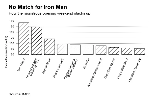 不过,这部新电影在美国无法超越其他最近的主要发行。美国队长:冬日战士上个月以稍强的数字开画。而钢铁侠3,去年的票房冠军,在首个周末的收入几乎是它的两倍。