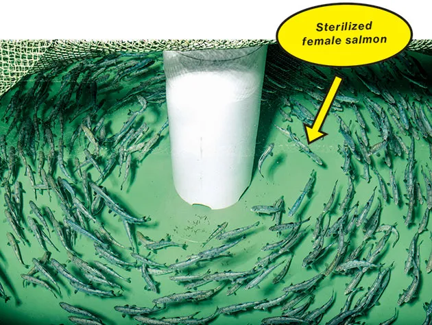 AquaBounty表示,它正在尽最大努力确保没有转基因鲑鱼逃逸。与典型的孵化场不同,后者有开放的水槽用于循环水,这个设施中的水经过四次过滤和筛选,并在释放到海洋之前通过氯盘冲洗。为了保护公司的知识产权并安抚担心鱼类可能在野外建立繁殖种群的环保人士,AquaBounty表示它将仅分发无菌雌性卵子进行养殖。他们在新雄鱼的帮助下生产这些卵子,这种鱼出生时为雌性,但已暴露于一种激素,导致它们发展为雄性并产生精子。但由于新雄鱼有两个X染色体,而雌性也有两个X染色体,因此将两者交配会使它们的后代为雌性。在离开设施之前,受精卵会经过一次高压处理,这一过程的灭菌率为99.8%。