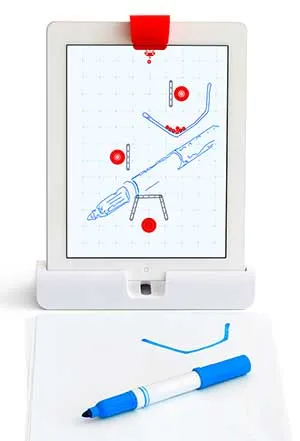 Osmo 是由位于加利福尼亚州帕洛阿尔托的一家初创公司 Tangible Play 制造的,包含一个 iPad 底座、一个适合放在设备摄像头上的反射器,以及三个带有实际物理组件的游戏盒子。在反射器的帮助下,iPad 可以观察到它面前发生的事情,以便孩子们可以根据屏幕上显示的指南,用积木拼建拼图。每当一个新组件放在正确的位置时,iPad 就会亮起。还有一个拼写游戏和一个绘画游戏。目标市场是 6 到 9 岁的儿童。