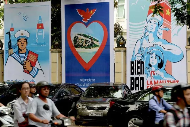 河内市中心的司机经过宣传广告牌,表达越南捍卫其海域和岛屿的决心摄影:黄丁南/法新社通过Getty Images中国与越南的斗争变得更加危险。5月2日,一家国有中国公司开始在南海一部分两国均声称拥有的海域进行石油钻探,自那以来关系一直在恶化。双方的船只互相攻击,并且在媒体对事件的报道推动下,反华抗议者在越南肆虐,纵火焚烧台湾拥有的工厂,其中有中国工人。
