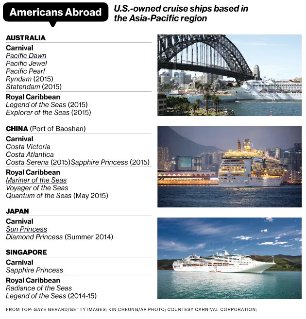 预计到2017年,中国将成为世界第二大邮轮市场(仅次于美国),其增长率远高于北美和欧洲,这两个地区历来是该行业利润的主要来源。嘉年华,作为行业最大的参与者,拥有10个品牌和超过100艘船,计划在明年在中国大陆部署四艘船,同时还将增加其在澳大利亚的全年船队。亚洲邮轮协会在2013年的一份报告中估计,该地区的需求将在2020年几乎增加三倍,达到380万名年度邮轮乘客,其中160万人来自中国。