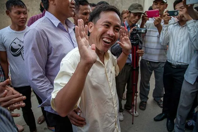 独立民主非正式经济协会主席Vorn Pao在金边于5月30日被释放后与支持者和记者合影照片由Omar Havana/Getty Images提供在12月底和1月初,数十万柬埔寨服装工人参加了一个工会领导的罢工,要求将最低月薪提高到160美元。示威活动遭到武警的暴力镇压,造成至少四人死亡,许多人受伤。包括几位工会领导和社区活动家在内的25名男子于1月2日和3日被逮捕并监禁——根据当地公民团体的说法,这是不公正的。