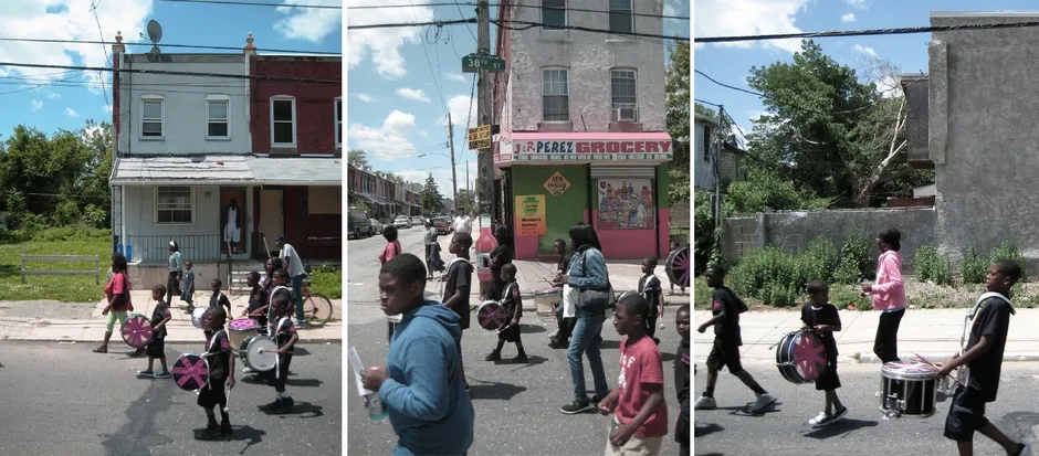 “当你想到一个家时,你必须想到居民。”根据为一个家举行葬礼的组织者,每年费城市有超过600座空置且结构不安全的房屋被拆除,这是周六不寻常的纪念服务的名称。天普大学泰勒艺术学院的天普当代艺术馆的管理员一直在寻找一种方式来标志这个以社区为基础的海洋变化。因此,他们邀请了当地艺术家雅各布·赫尔曼和史蒂文和比利·杜法拉,他们开始发展葬礼的想法。不久,“回家”仪式成为了一个社区合作,邻居们和来自橄榄山浸信会及曼图亚公民协会的代表们参与其中。