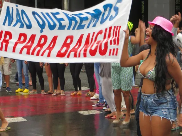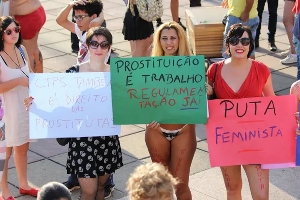 尼特罗伊性工作者被驱逐的抗议迹象。埃德·卡洛斯·德·法里亚 - 坎皮纳斯的妓女之神在去年因 为性工作者提供英语课程 而登上头条的世界杯东道主城市贝洛哈里桑塔,抗议者现在要求承认他们的法律地位,并对他们的行业进行监管,以提高安全性和保障。