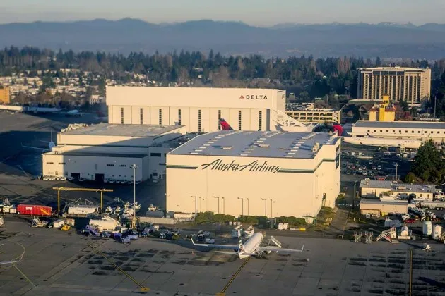 阿拉斯加航空在西雅图-塔科马国际机场的飞机维修大楼摄影:乔治·罗斯/盖蒂图片社航空公司在西雅图的竞争可能终于变得严肃起来。