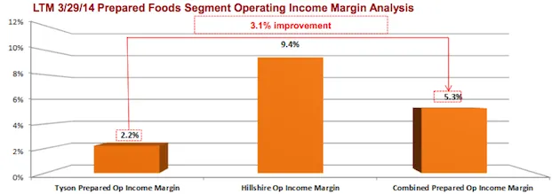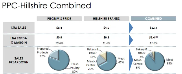 **2. 商品肉类是一个低利润行业。**收购一家拥有强大熟食产品组合的公司可以帮助生产商提高盈利能力。例如,收购希尔夏,该公司约四分之三的销售来自零售,将有助于提高朝圣者之 pride 和泰森的利润率,正如这些公司在演示中指出的那样。