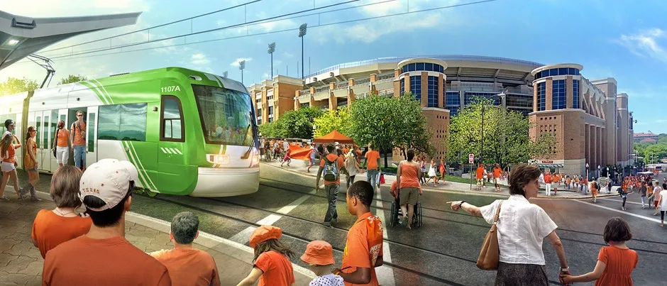 在奥斯汀的东南市中心,交通因I-35的拥堵而受到阻碍。Keahey表示,这部分交通源于短途旅行。电车式的轻轨设计意味着城市轨道系统可以在东南市中心更紧的用地转弯和更多的停靠站之间导航。这些车辆可以像轻轨车一样连接在一起,但在必要时也可以在混合交通中运行。
