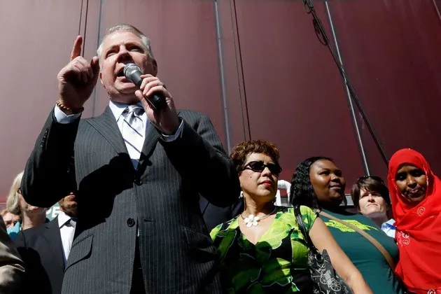 穆雷在西雅图市政厅外的集会上发言照片由泰德·S·沃伦/AP照片提供“西雅图创造了劳动历史”大声宣告着这篇城市本地报纸的整版头条。 *《西雅图时报》*正在传播市议会批准15美元最低工资的消息,这是美国最高的城市工资保障。15美元的门槛一直是活动人士的口号,他们的胜利为其他地方的立法者提供了强有力的例证:“西雅图做到了。你们为什么不能?”
