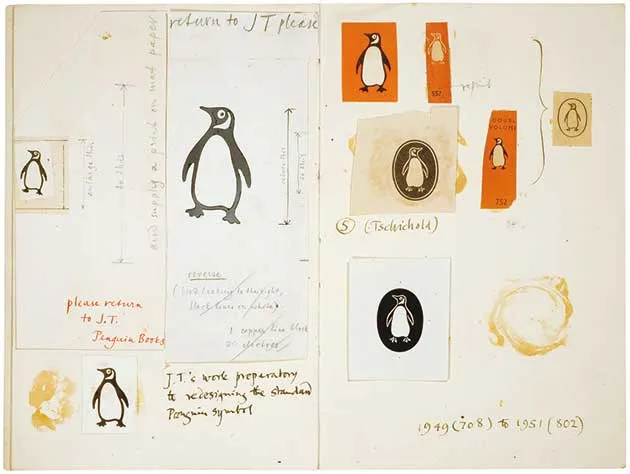 根据设计师和作家菲尔·贝恩斯的说法,杨从动物园回来时带着他的画作和观察“我的天啊,那些鸟真臭!”但他的坚持得到了回报。当莱恩最终将他的六便士企鹅带入世界(该公司在1936年独立于博德利出版社),它们带有一个符号,这个符号一直持续到1949年,当时由扬·齐希霍尔德进行了精炼和重新绘制,更接近今天使用的标志。