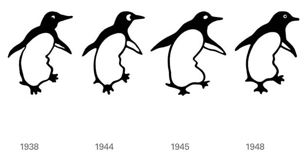 “齐基尔德绘制了最终版的企鹅,”企鹅历史学家、企鹅收藏协会秘书史蒂夫·哈雷说,“但即便如此也有变体——特别是在书本上向左或向右看;或者在椭圆形内;椭圆形是白色还是橙色,等等。我的理解是,企鹅标志应该‘看向’书本——即,注视书名,而不是背对它。因此,如果它位于右侧,它应该向左看,反之亦然。但如果位于封底,它通常不会向上看。”正如贝恩斯在他的公司视觉历史《企鹅由企鹅》所展示的那样,Penguin by Penguin,自那时以来,企鹅的形象经历了一系列略有不同的迭代,作为品牌的它在此过程中还加入了其他鸟类,最著名的是鹈鹕和海雀。