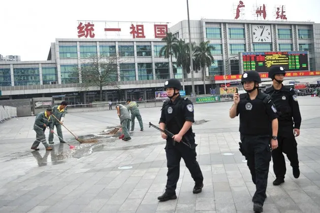 一支中国特警队在广州火车站的袭击后走过清洁工,清理血迹,该袭击被指责为来自新疆的“恐怖分子”,发生在5月6日照片由法新社通过Getty Images提供关于其衰退的报道显然被大大夸大,中国仍然强大的国家发展和改革委员会,国家发展和改革委员会,最近频频出现在新闻中。