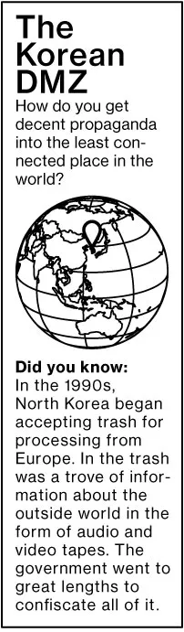 在平壤政权下,观看未经批准的外国媒体是非法的,违规者会被送往古拉格。政府审查员在全国范围内对家庭进行突袭,以查获电影和录音带。根据北朝鲜知识分子团结组织的主任金亨刚的说法,该组织由已逃往南方的学者、工程师和医生组成,在每次突袭之前,审查员会切断整个村庄的电力,以便将带子和光盘困在播放的机器中。北朝鲜公民开始在家中保留两台收音机——一台给审查员看,另一台用来收听——他们用汽车电池和发电机为CD播放器供电,以躲避秘密警察的策略。