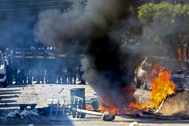 在6月12日的圣保罗反世界杯抗议活动中,防暴警察保持阵型照片由Miguel Schincariol/AFP通过Getty Images提供随着巴西世界杯的临近, 抗议活动、 施工延误和 犯罪,也许没有人比 慕尼黑再保险公司的承保经理安德鲁·达克斯伯里感到更轻松。