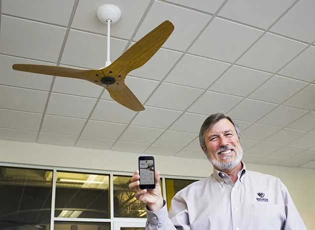 本月早些时候,一家名为Big Ass Solutions(前身为Big Ass Fans)的肯塔基州列克星敦公司开始接受新款“智能”吊扇的订单。它由压缩竹制成,配备了Wi-Fi和监测温度和湿度的传感器。用户可以编程让风扇根据一天中的时间、温度以及房间内是否有人进行反应。