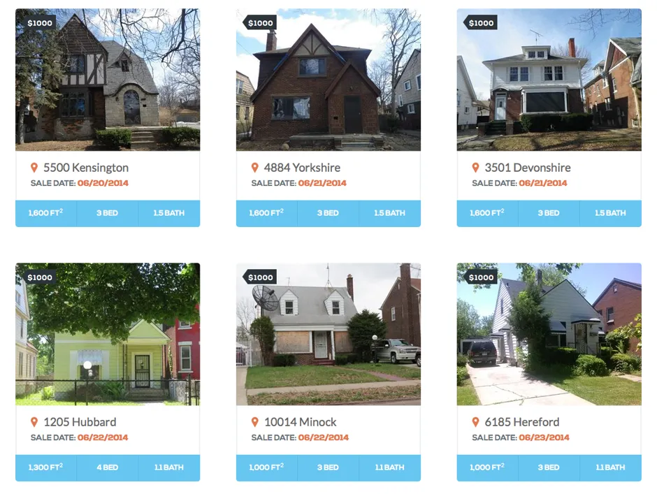 通过拍卖赢得房屋的人需要进行修缮。这不是投机者的工具:拍卖结束后72小时内需支付竞标价格的10%,而买家必须在60天内完成交易。(如果购买价格低于20,000美元的话;对于超过20,000美元的房屋,买家有90天的时间,例如那栋位于115 Chicago Blvd的华丽住宅。)